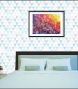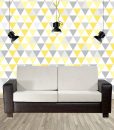 Papel de parede Triangular Yellow Grey em adesivo fosco ANTI REFLEXO, com impressão em máquinas de impressão em alta resolução.